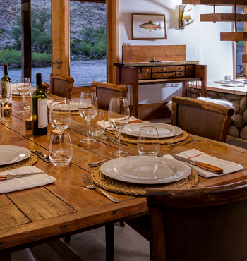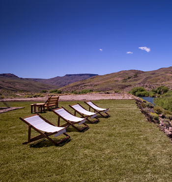 Aluminé River Lodge has a full deck overlooking the upper Alumine River and the Andes mountain range for relaxing after an active day enjoying nature.